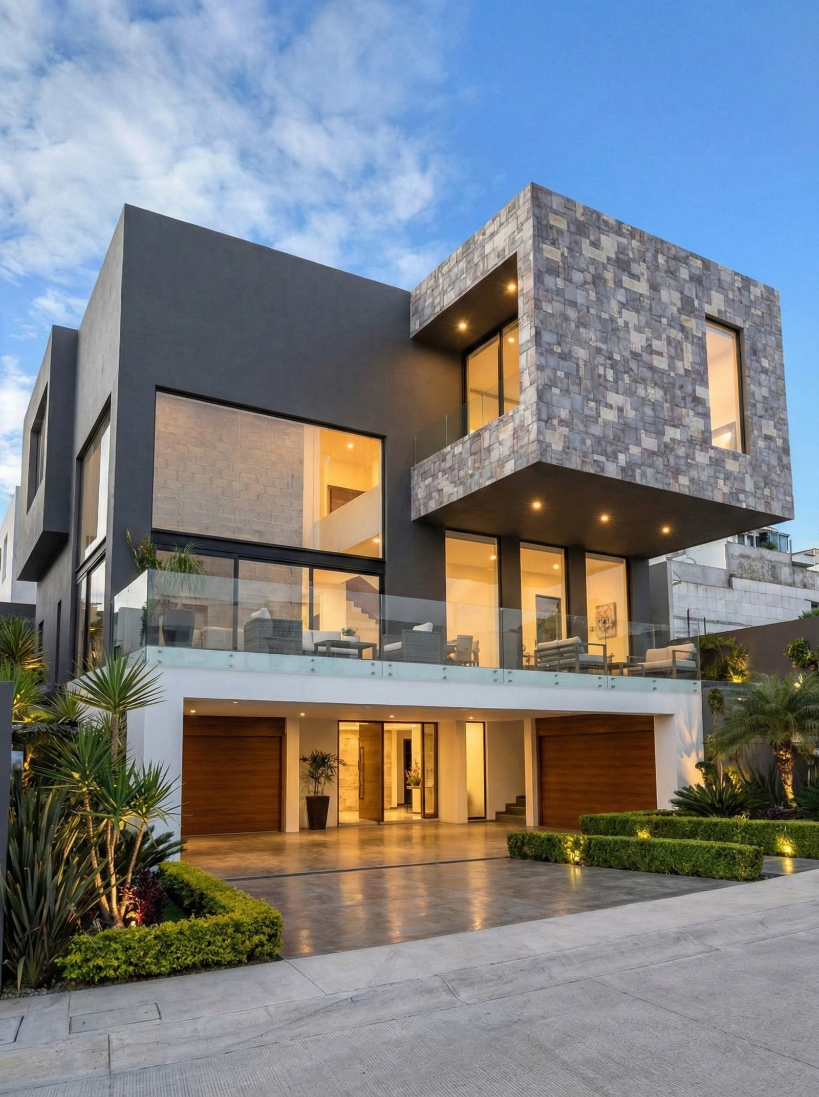 La construcción de este volado requirió una meticulosa atención a la estructura de soporte y al anclaje de la piedra para garantizar la seguridad y la estética, creando una sensación de ligereza y solidez simultáneamente.2026